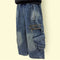 Kids Blue Denim Cargo Pant with Elastic Waist and Zipper Pockets