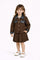 Add a fierce touch to your girl’s winter wardrobe with this leopard-print 2-piece set. The outfit includes a soft brown skirt and matching jacket, featuring black faux leather detailing on the collar, cuffs, and pockets for a bold fashion statement. The gold-tone buttons add elegance, while the warm fabric ensures comfort and style during the colder months. Perfect for outings, parties, or casual fashion looks.