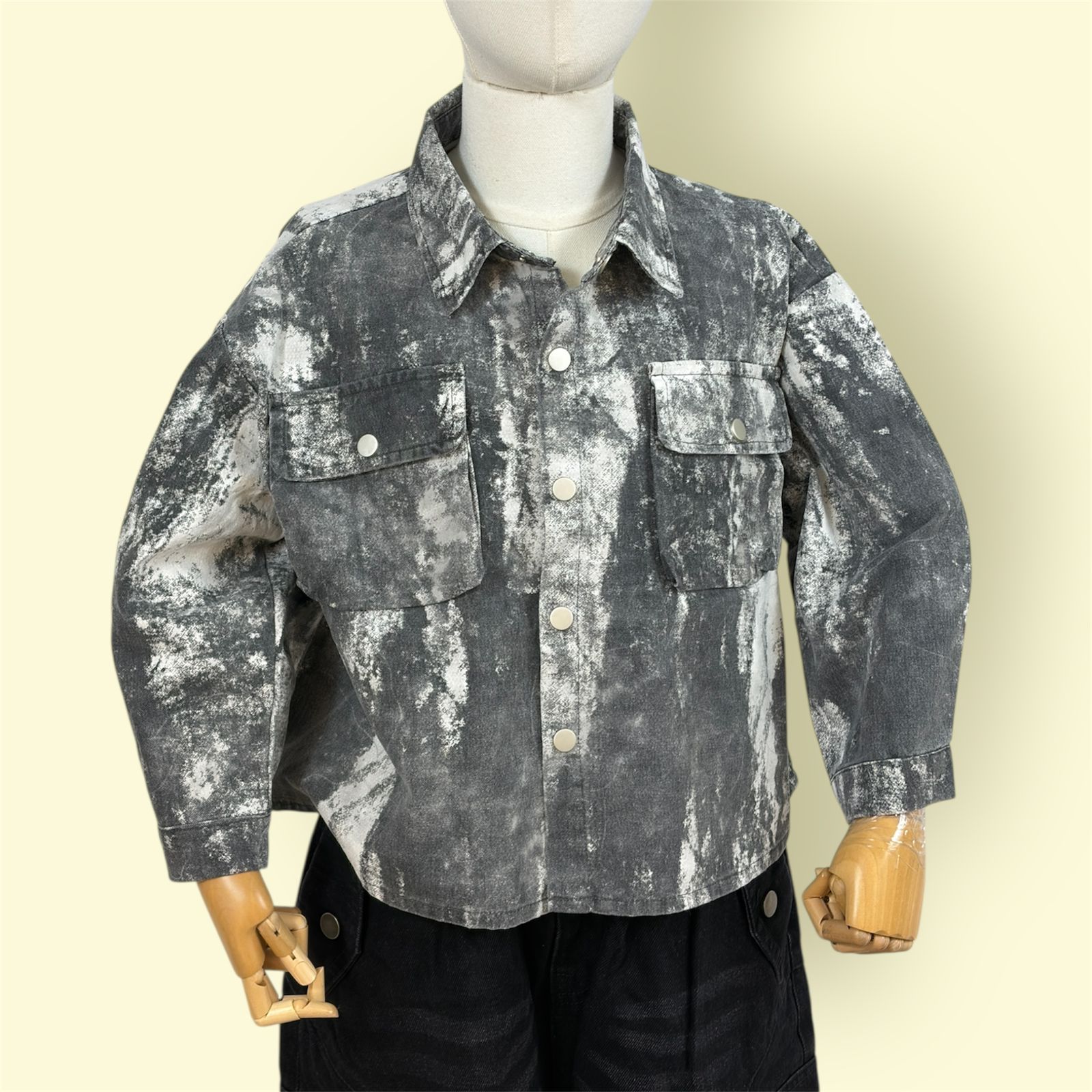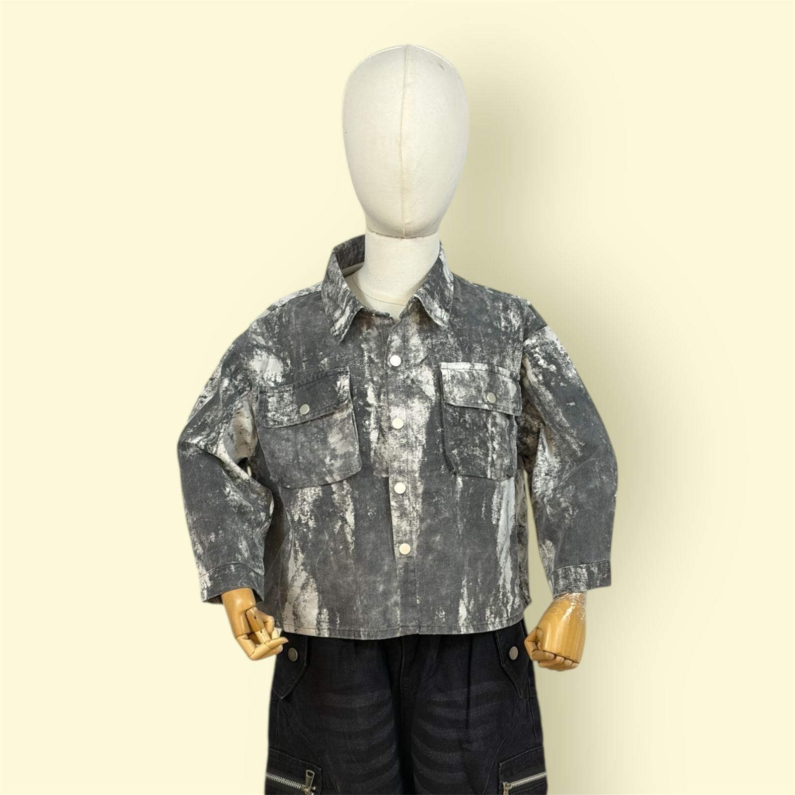 Give your child a bold and trendy look with this grey tie-dye denim shirt. Featuring dual front flap pockets and a button-down design, this shirt combines street-style fashion with everyday comfort. The soft denim fabric ensures durability and ease of movement, making it perfect for casual wear or outings.